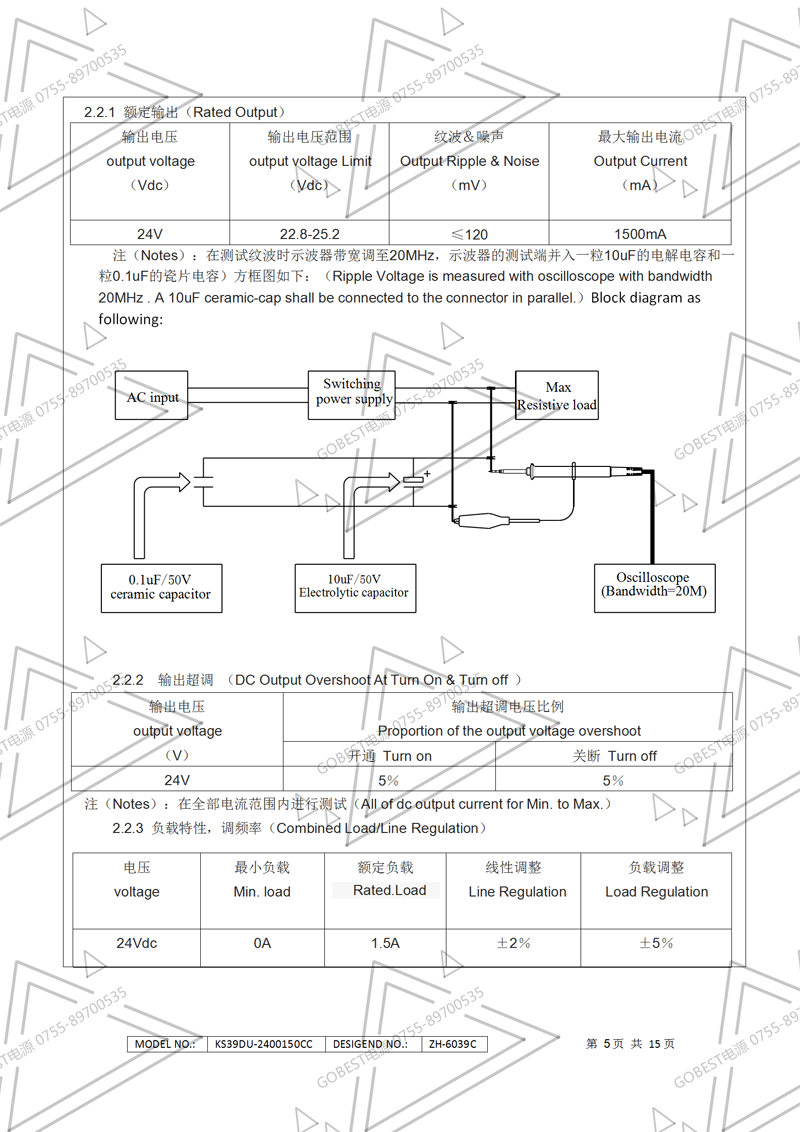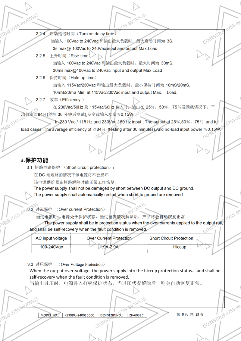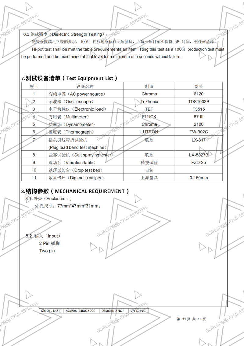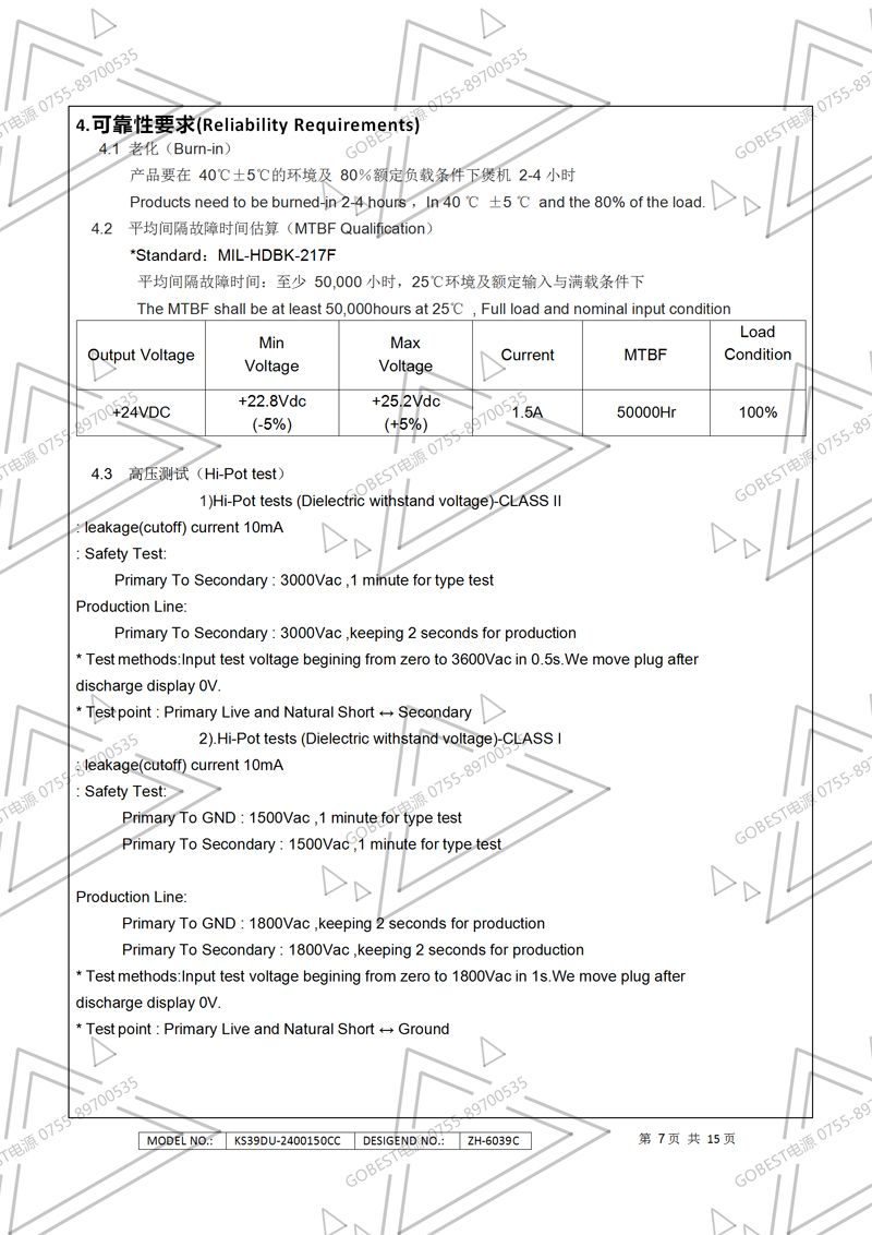 24V1.5A電源適配器規(guī)格書(國標插墻式)