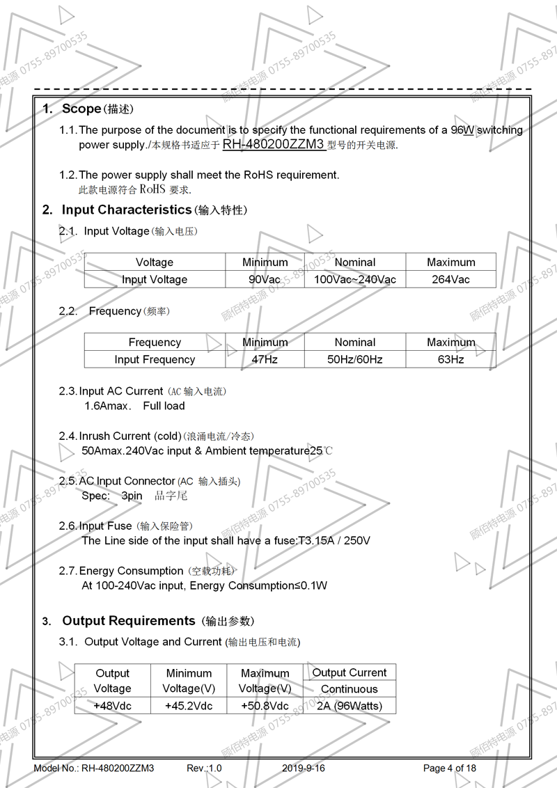 電源規(guī)格書(shū)
