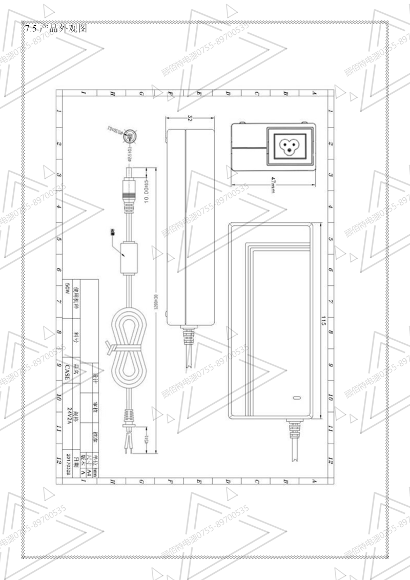 19V3.5A電源適配器規格書