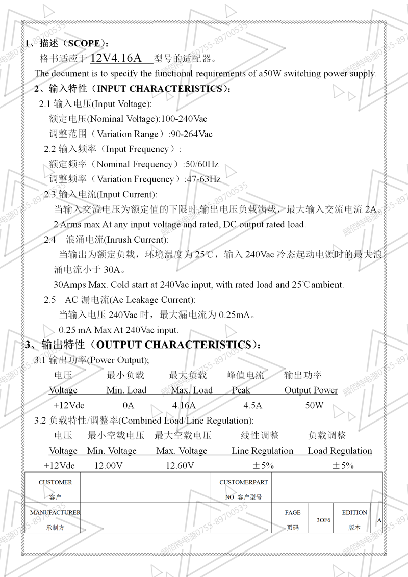 電源規(guī)格書